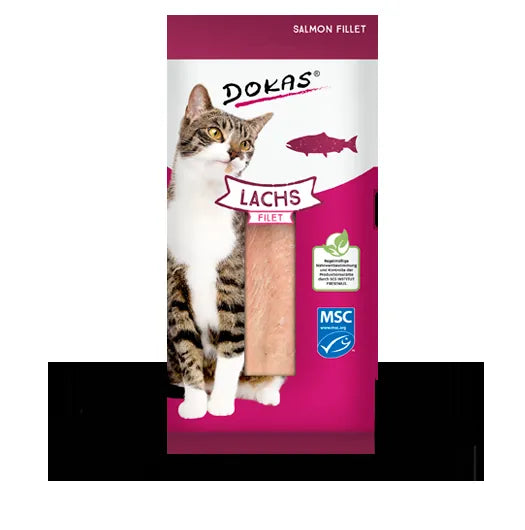 100% Lachsfilet - Der saftige Verwöhnsnack ist für jeden samtpfötigen Gourmet aber auch für ernährungssensible Katzen eine delikate Belohnung