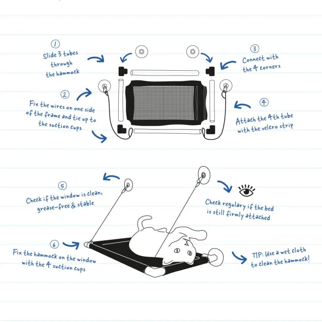 Befestigen Sie die Hängematte mit den starken Saugnäpfen im Handumdrehen am Fenster. Ihre neugierige Katze kann jetzt in aller Ruhe die schöne Aussicht und die Sonne genießen.