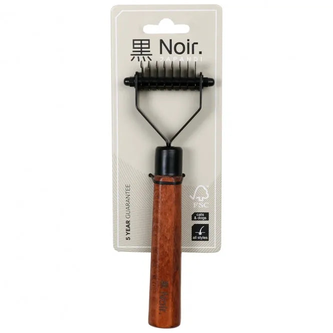 Trimmmesser von Noir Japandi aus verzinktem Edelstahl mit Schneidklingen zum schmerzlosen Entfernen von losen Haaren und Unterwolle. Die Klingen sind für zusätzliche Sicherheit abgerundet und haben einen ergonomischen Griff aus FSC-zertifizierter Buche mit dunkel gebeizter Oberfläche. Geeignet für Hunde und Katzen. Achtung! Verletzungsgefahr! Außerhalb der Reich- und Sichtweite von Kindern aufbewahren!