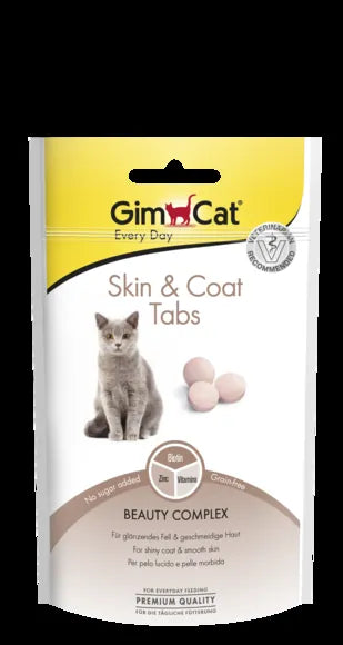 GimCat Skin & Coat Tabs unterstützen ein sichtbar glänzenderes und gesünderes Haarkleid, einen schnelleren Fellwechsel, geschmeidigere Haut und festere Krallen. Sie wirken positiv auf den Haut- und Fellstoffwechsel, beugen Mangelerscheinungen vor und regulieren bereits bestehende Biotin- und Zink-Unterversorgung.
