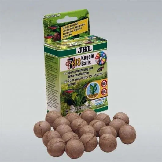 JBL Die 7 + 13 Kugeln sind gehaertete Duengekugeln, die mit allen fuer Wasserpflanzen wichtigen Naehrstoffen, insbesondere Eisen und Spurenelementen, in einem speziellen Verfahren angereichert wurden. Die Naehrstoffe werden nur langsam abgegeben, wodurch eine guenstige Depotwirkung erreicht wird. Die Kugelform ermoeglicht eine bequeme Anwendung im bereits eingerichteten Sueßwasseraquarium. Besonders geeignet zur gezielten Naehrstoffversorgung bzw. Nachduengung von Wasserpflanzen, die Naehrstoffe vermehrt ueber die Wurzeln aufnehmen, wie z.B. Echinodorus-Arten, Cryptocorynen und andere.