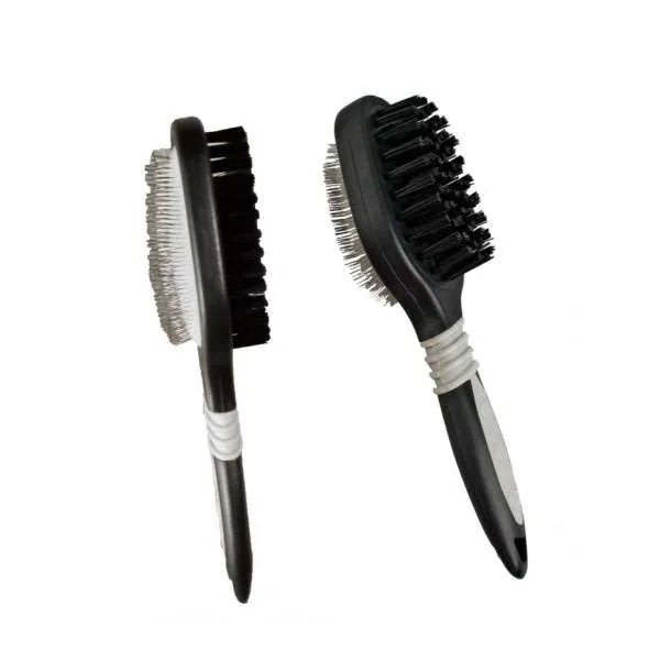 Diese 2in1 Bürste dient auf der einen Seite als Borsten- und auf der anderen Seite als Zupfbürste und ist so eine tolle Komplettlösung zur Fellpflege.