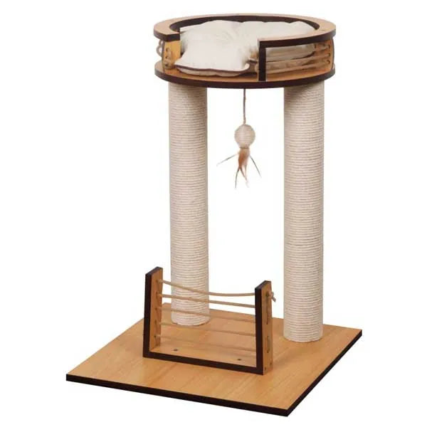Der Kratzbaum Pitch passt mit seinem tollen Design perfekt in jede modern eingerichtete Wohnumgebung. Die Kombination aus Kratzbaum, Spielplatz und Bett macht ihn zum Lieblingsplatz jeder Katze. Mit Federspielzeug.
