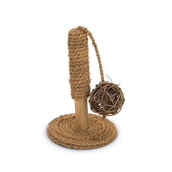 Der Spielpfahl für Kleintiere und Nager, z.B. Kaninchen, Meerschweinchen oder Mäuse, besteht aus Holz, welches mit Kokosnussseil umwickelt ist. Er bietet eine tolle Beschäftigungsmöglichkeit für Ihr Tier und hilft zugleich bei der Zahn- und Krallenpflege.