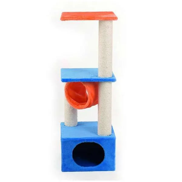 Die Platten und die Höhle sind mit Plüsch bezogen und bieten so bequeme Schlafplätze, während die Sisal-Kratzstämme für eine gute Möglichkeit zum Krallenschärfen sorgen. Die Röhre besteht komplett aus Plüsch.