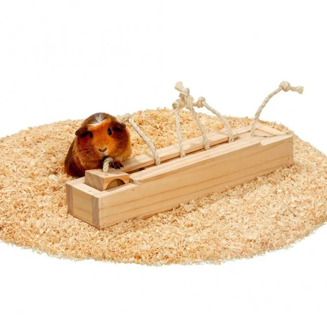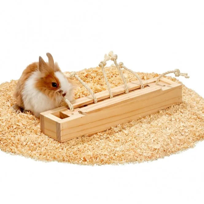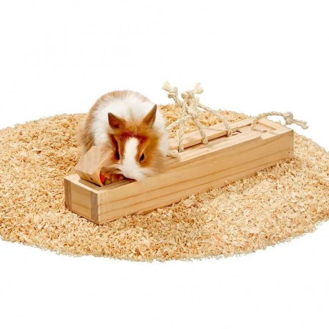 Intelligenzspielzeug für Kleintiere - Holzkästchen mit Seil zum Herausziehen
