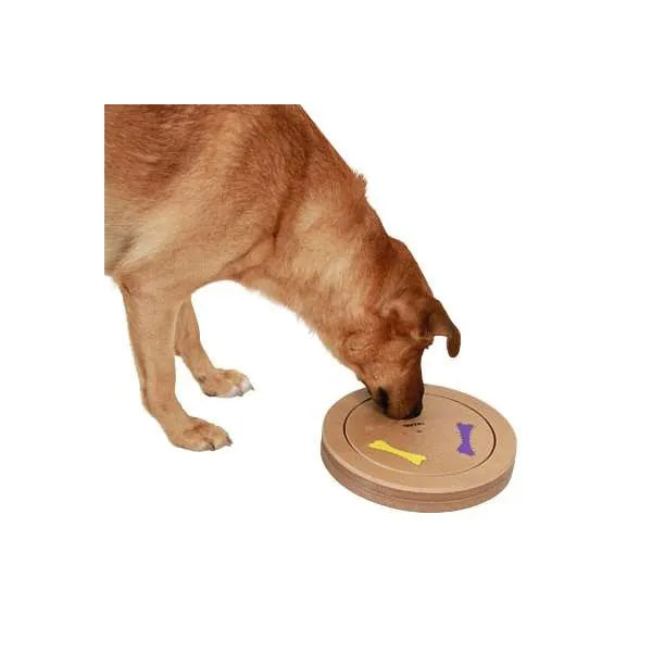 2 Spiele in einem! Hütchenspiel und Roulette. Bei diesen Brettspielen werden Snacks in Öffnungen gelegt, die dann mit Hütchen oder der Drehplatte verdeckt werden. Der Hund muss die Hütchen heben oder die Platte mit der Pfote oder Schnauze drehen, um an die Snacks zu kommen. Ein tolles Spiel auch für Hunde, die krank, operiert oder schon älter sind. Durch intensives Spielen wird auch die Bindung zwischen Mensch und Hund gefördert.