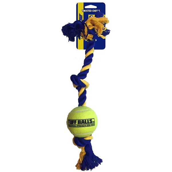 Geflochtenes Seil gefertigt aus starker, "1st class" Baumwolle. Es gibt viele Seilspielzeuge für Hunde auf dem Markt, jedoch wenige so gut wie dieses! Die blau/gelbe Farbe kann Ihr Hund z. B. auf Rasen besonders gut erkennen.