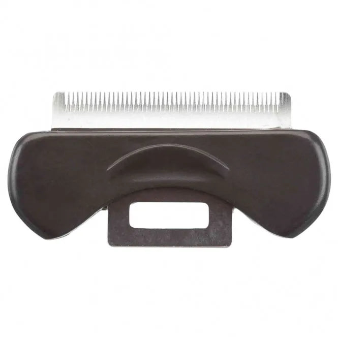 Der Striegelkopf lässt sich durch einen Schnappmechanismus am Griff einfach austauschen. Die Klinge ist aus rostfreiem Edelstahl.