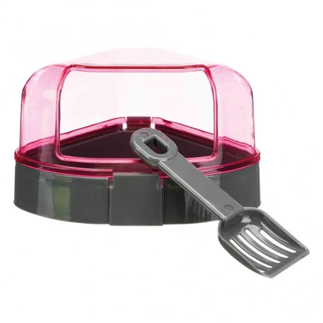 Die Ecktoilette mit Dach aus Kunststoff erleichtert die Sauberhaltung des Käfigs. Sie ist hygienisch und leicht zu reinigen und spart Streu. Mit Streulöffel.