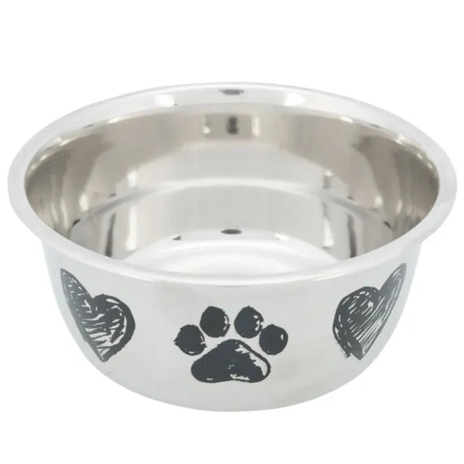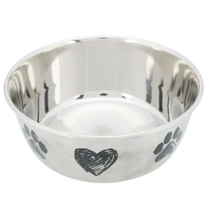 Trixie Edelstahlnapf mit Pfoten und Herzen