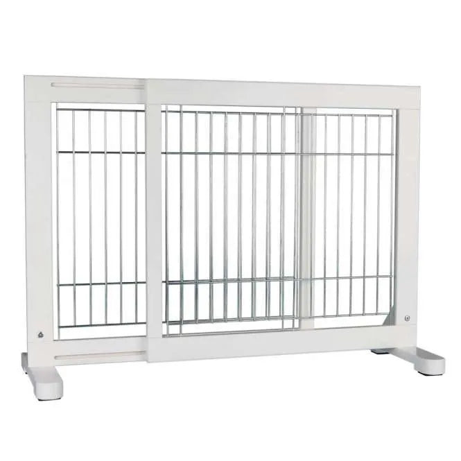 Dieses hochwertige Hunde-Absperrgitter besteht aus lackiertem Kiefernholz mit verzinkten Gitterstäben und ermöglicht es Ihnen Räume, Treppen etc. für kleine und mittelgroße Hunde abzusperren.