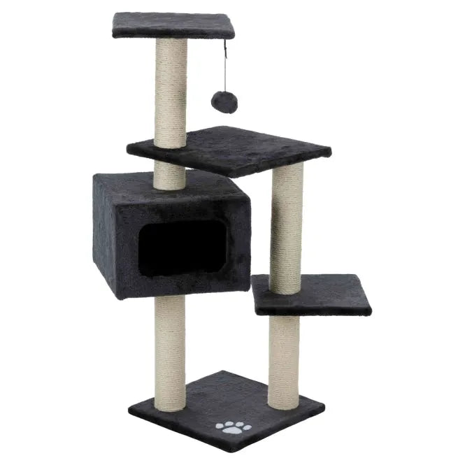 Der Trixie Kratzbaum Palamos mit einer Höhe von 109 cm besteht aus einer Bodenplatte, die eine Fläche von 39 x 39 cm hat, einer gemütlichen Höhle und mehreren Liegeflächen. Die 5 Sisalstämme haben einen Durchmesser von 9 cm, die Liegeplatten sind 39 x 39 cm (mittlere Platte) bzw. 29 x 29 cm groß (oberste, sowie unterste Platte). Die Höhle hat die Maße 35 x 24 x 35 cm und ist mit einer Plüscheinlage ausgestattet. Damit keine Langeweile aufkommt, ist der Kratzbaum außerdem mit einem Spielzeug am Gummiband bestückt.