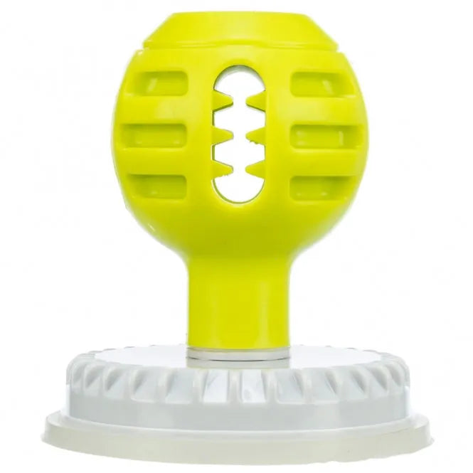 Ist dein Hund unruhig oder gestresst in ungewohnten Situationen? Der Lick'n'Snack Ball schafft Abhilfe: Du kannst das Spielzeug mit verschiedenen Leckereien befüllen, die sich dein Vierbeiner durch Schlecken erarbeiten soll. Dieser Vorgang sorgt dafür, dass er abgelenkt ist und sein Stresspegel sinkt. Im Inneren bietet der Ball Platz für größere Snacks, die seitlichen Rillen eignen sich dagegen hervorragend für Leberwurst oder andere Pasten.