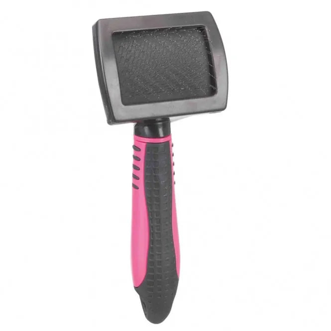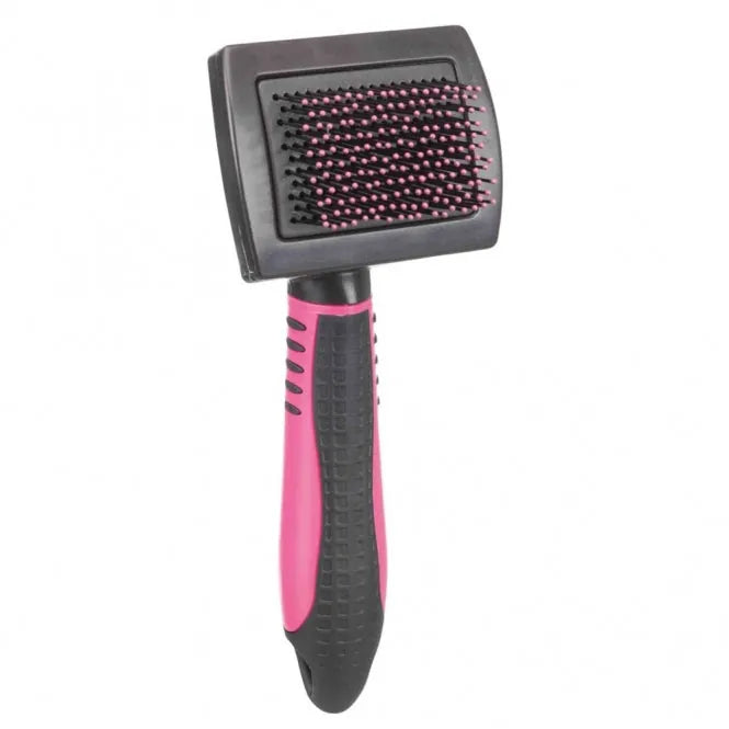 Die Softbürste eignet sich für Katzen mit Kurzhaar. Mit ihren extra weichen Kunststoffborsten mit Noppen ist sie das optimale Hilfsmittel zur schonenden Pflege des Deckhaars und der Unterwolle. Der Kunststoffgriff mit rutschfester Gummieinlage sorgt dabei für einen sicheren Halt in der Hand.